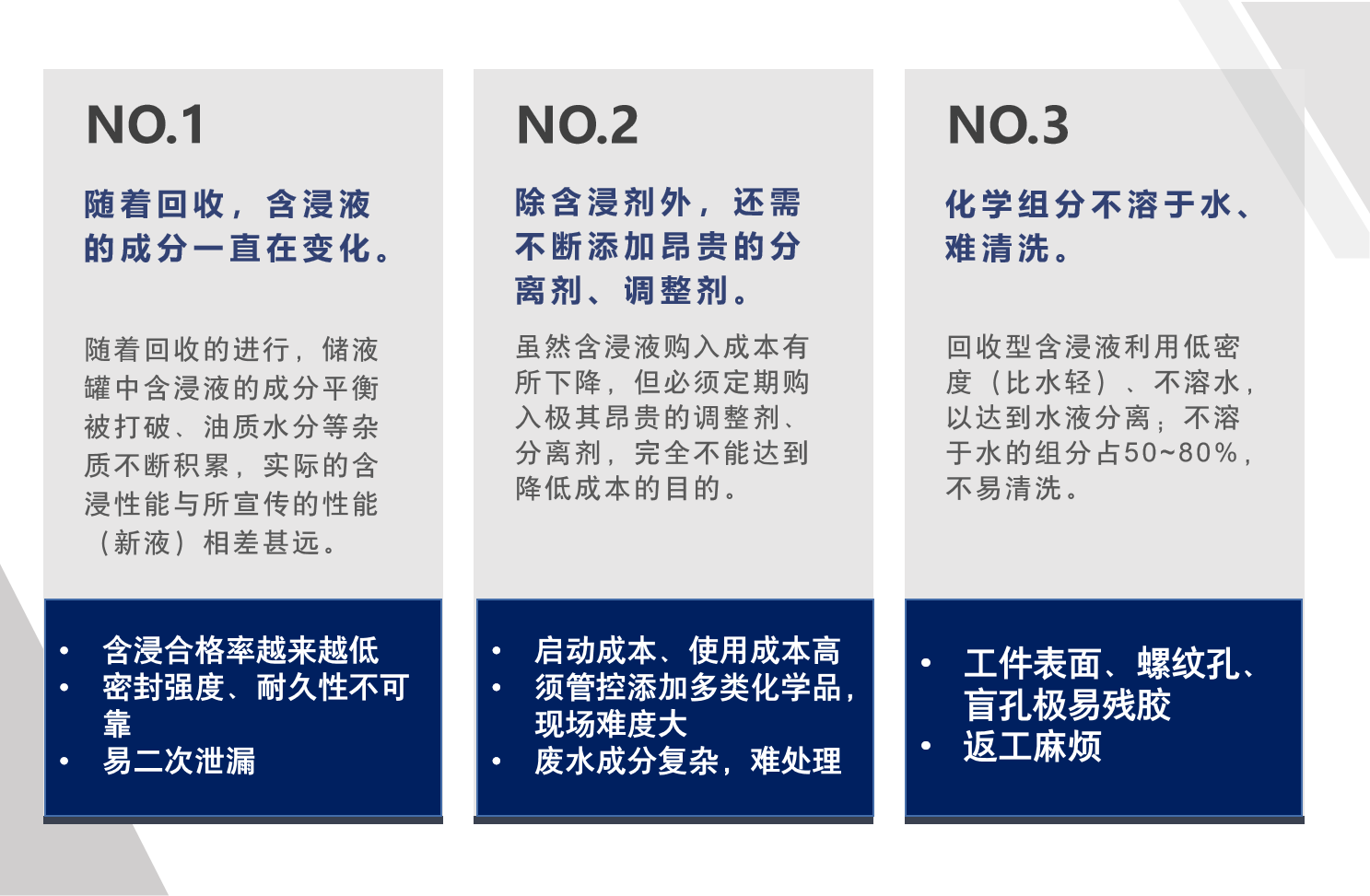 如果貴司正在使用回收型浸滲劑、并受其困擾,請(qǐng)與我們聯(lián)系。我們將免費(fèi)改造方案,可助貴司實(shí)現(xiàn)品質(zhì)升級(jí)。